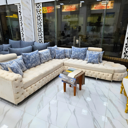Cream Tufted L-Shaped Sofa | Rukan Al Fareed