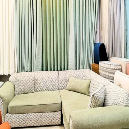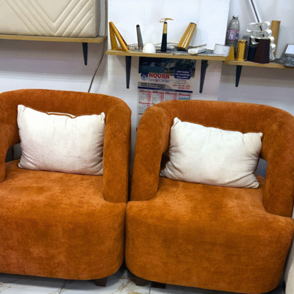 This Beige Curved Modern Sofa from Rukan Al Fareed Branch 2 combines comfort and elegance in a sleek, rounded silhouette. Upholstered in soft velvet with vibrant accent cushions, it’s perfect for creating a warm and inviting living room atmosphere.